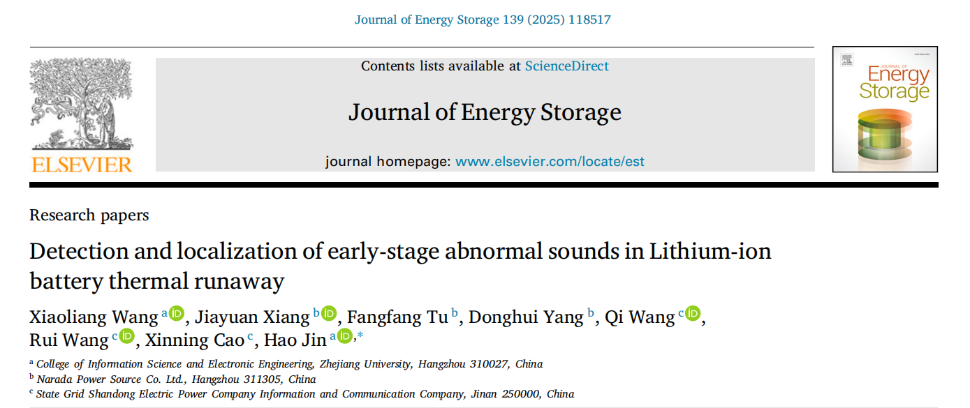 近日,南都电源联合浙江大学、国网山东信通公司,在锂离子储能领域国际顶级期刊《Journal of Energy Storage》发表最新研究成果,提出了一种基于麦克风阵列声学信号和AI深度学习算法的锂离子电池热失控早期检测定位新方法。