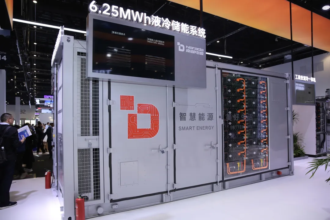 展位上,南都电源展出了全新升级的Center L Max 8.338MWh储能系统。该系统搭载南都自研超大容量固态电池,系统能量密度和安全性均得到大幅提升。