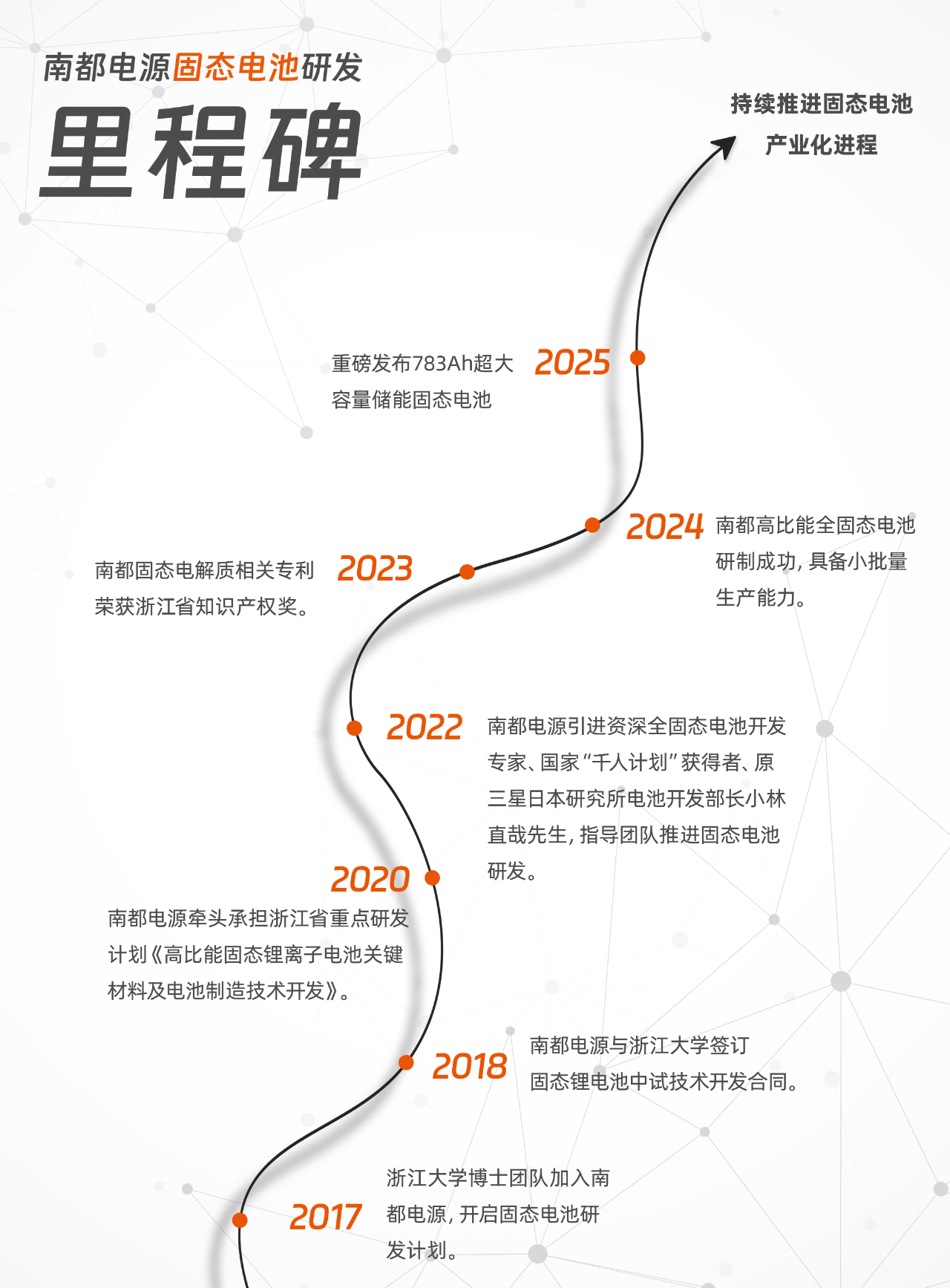 2025年4月,南都电源重磅发布783Ah超大容量储能固态电池。通过“柔性两相氧化物固态电解质”“多层异质复合结构设计”及“电解质原位成膜”三大核心技术突破,实现了电池能量密度与安全性能的跨越式提升。