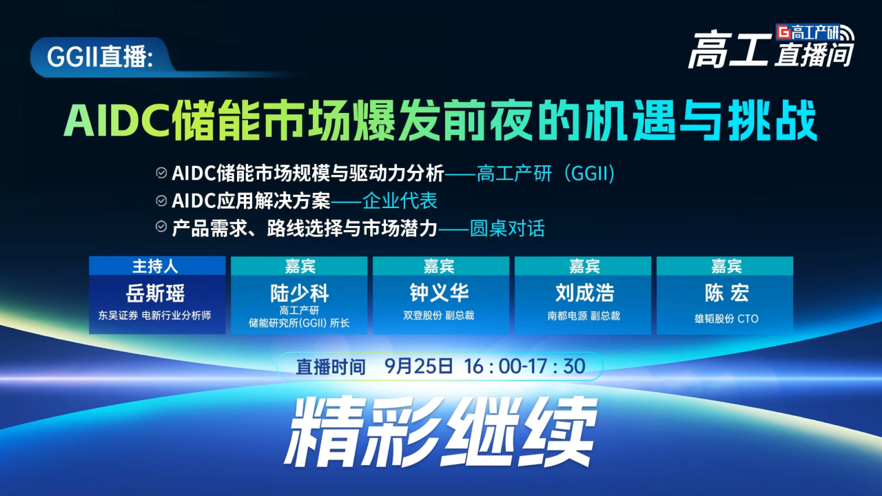 9月25日,南都电源副总裁、国际营销中心总裁刘成浩受邀做客高工直播间,与行业大咖共同围绕“AIDC储能市场的机遇与挑战”展开深度对话。